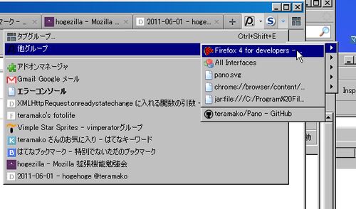 拡張開発でFirefox4から使用できる、Firefoxボタンにも使用されているsplitmenuを使ってみた。 が、微妙すぎて萎えた。splitmenuは、単なるメニューとは違い、自身をクリックすれば相応のコマンドが発行され、少しポインタを重ねておけば、子のメニューがポ…