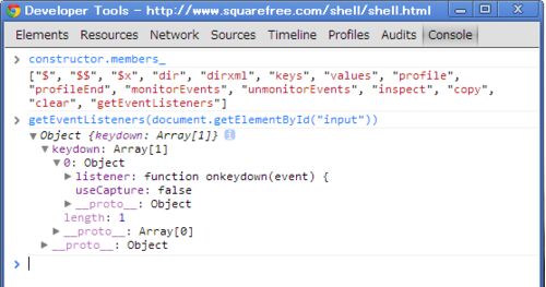 constructor.members_に使えるメソッド名一覧があることを発見して、getEventListeners(node)で、そのnodeでリッスンしているハンドラが取れる事を知った。デバッグに役に立ちそう。 参考 Command Line API Reference - Chrome Developer Tools — Google Dev…